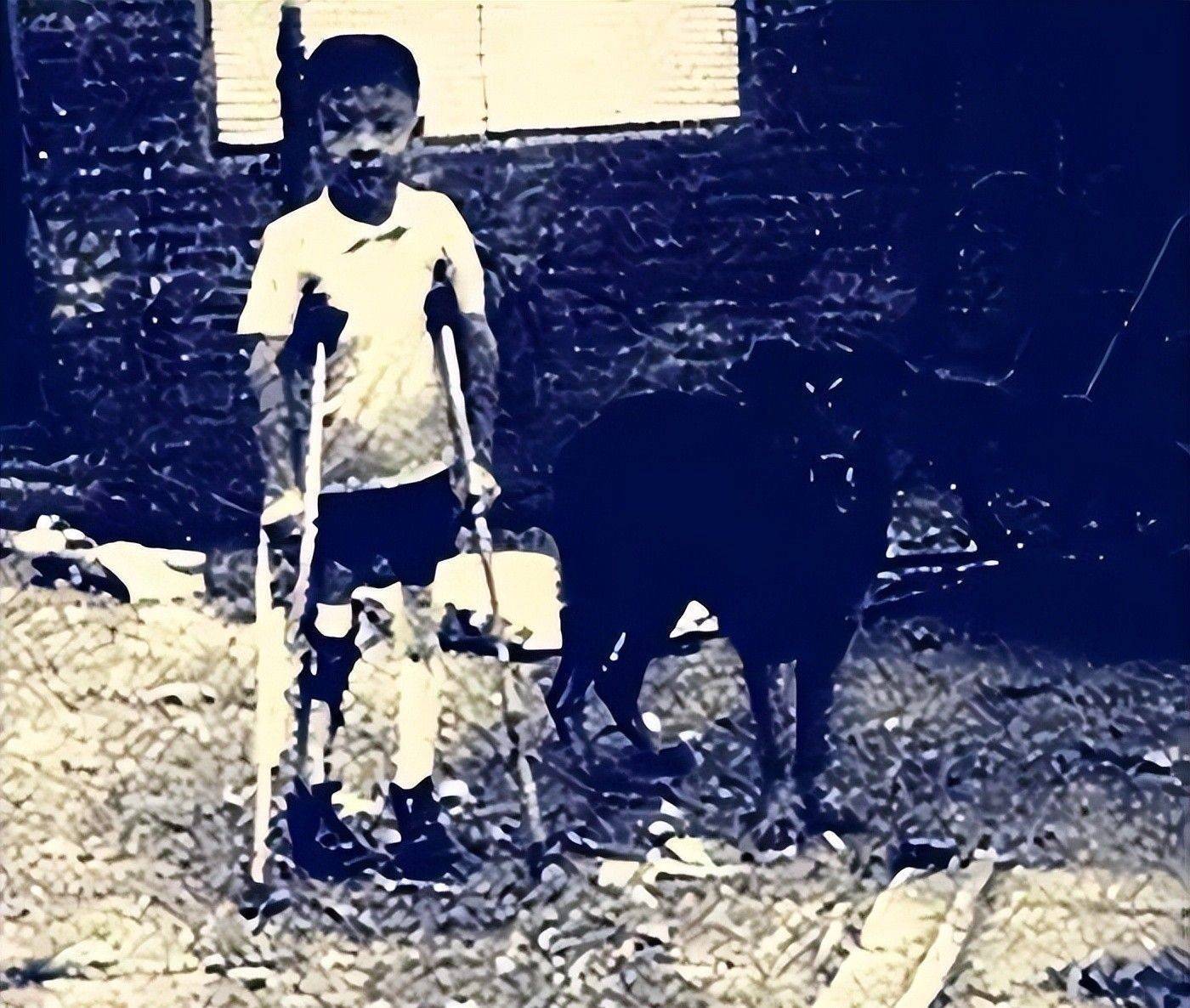 由于年龄太小无法接受手术矫正,在七岁前,他只能依靠双臂在地上匍匐移动,用爬行的方式探索世界。